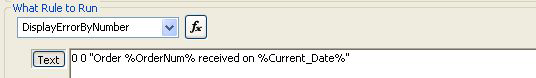Example 4. OrderNum and MinNum are regular variables containing constants. They are not surrounded by any special characters in the body of the rule except in DisplayErrorByNumber.
