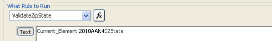 The variable 2010AAN402State can then be used in the parameter for a rule like the one shown below, which checks the zip code in the current element to see if it is valid for the state that is in the variable 2010AAN402State.