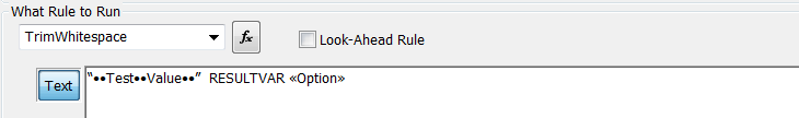 This example causes the string ‘Test·Value’ to be stored into variable RESULTVAR. Because no Option was specified, ‘LTM’ is assumed so leading and trailing whitespace characters are removed and duplicate whitespace sequences within the string are replaced by a single space.