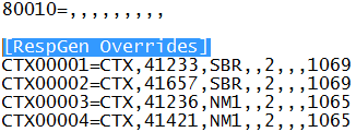 In the APF’s [RespGen Overrides] section, add your own line for each CTX segment you intend to generate. See CTX Lines in the APF.