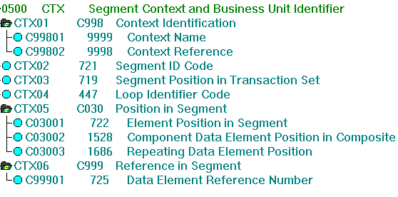 The format of the CTX line in the APF corresponds closely to the structure of the 999 Segment Context CTX segment, which is: