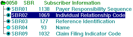 The CTX segment is saying that the IF part of the relationship was on the SBR segment at position 14 in the EDI data, the element is at position 2 in the SBR, and its element ID is1069.