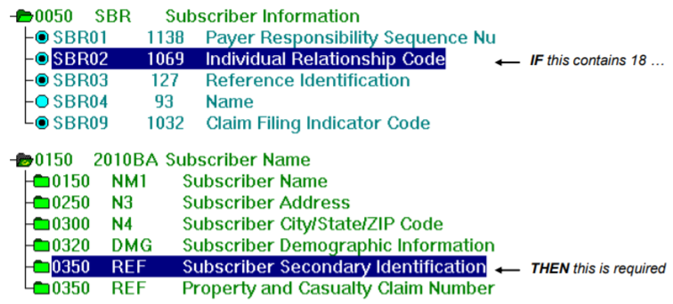 For example, you might have a situational rule where this REF is required if the SBR02 contains 18: