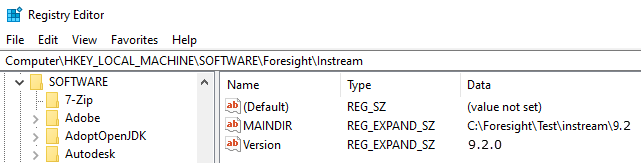 The registry under key SOFTWARE > Foresight > Instream > MAINDIR