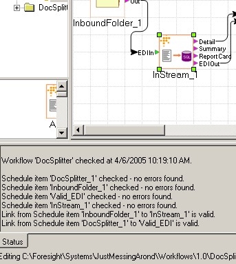 In this example pane, the workflow author checks the loaded schedule to see if the entries make sense semantically: are required values used, do links match up, etc.