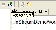 To log the current workflow, click until the dot turns green. Choose the logging level with the arrow. |