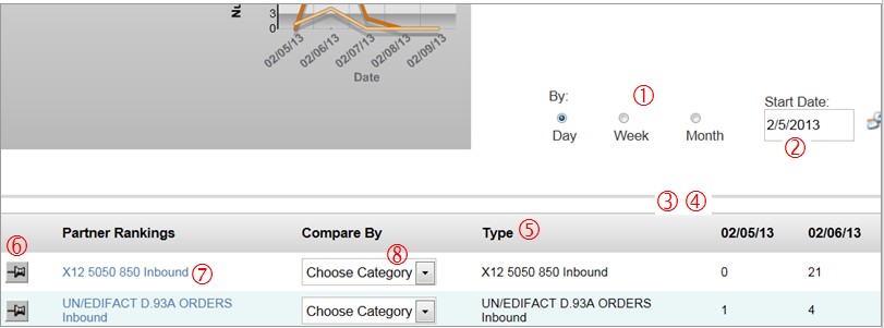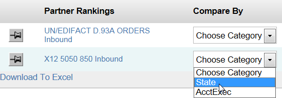 The Transaction Insight administrator might have set up categories of partners. If so, you can compare document volume within a category. You might compare the volumes among states, clearinghouses, providers, or any other category set up by your administrator.