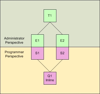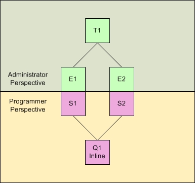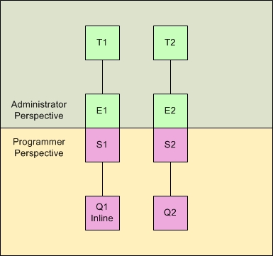 While it would appear straightforward for programmers to avoid the violation of the simple case of the first diagram, the situation is more complicated because responsibilities are divided between programmers and administrators.
