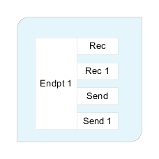 Endpoint and its abilities are represented with the following shape. Here, Endpoint 1 has four abilities: Receive, Receive 1, Send, and Send 1.