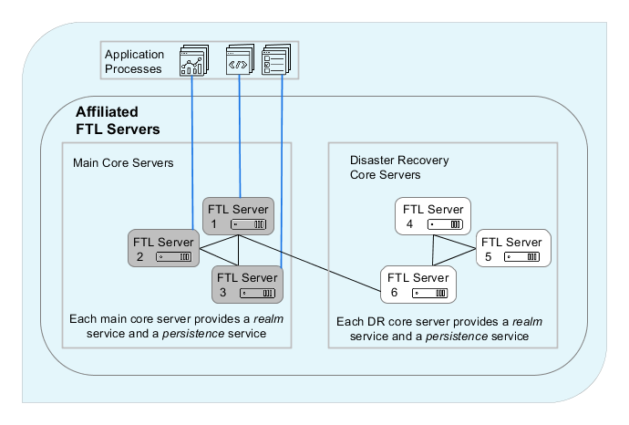 You can use the disaster recovery feature to resume FTL communications after the main operations site becomes disabled. Application systems can continue after the interruption using replicated persistence data at a remote disaster recovery site.