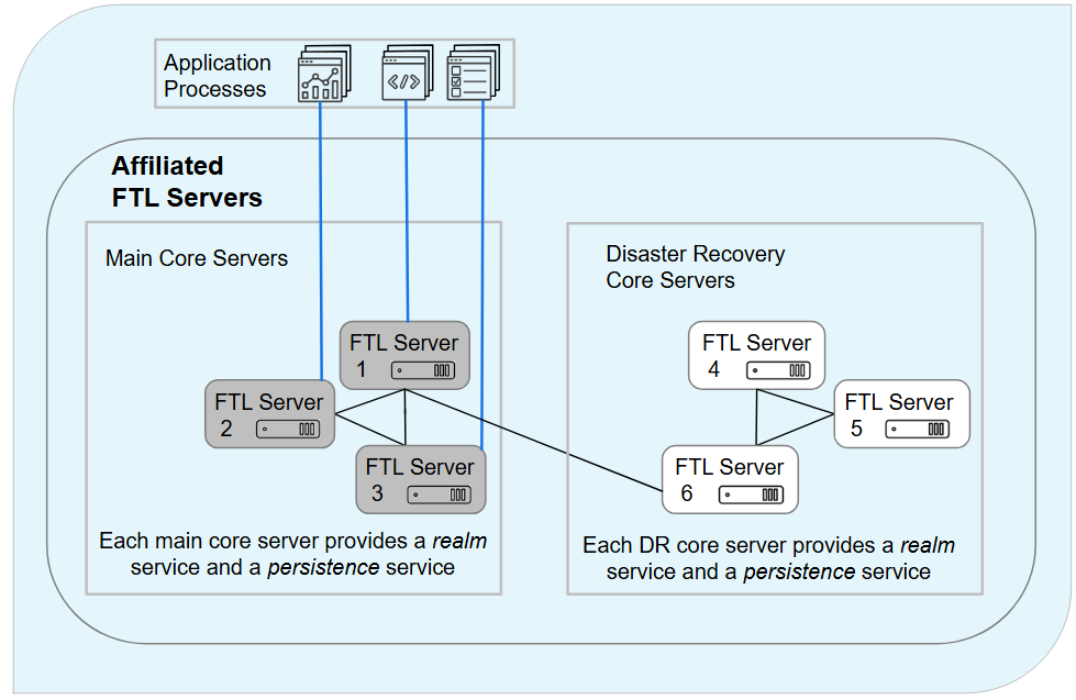 You can use the disaster recovery feature to resume FTL communications after the main operations site becomes disabled. Application systems can continue after the interruption using replicated persistence data at a remote disaster recovery site.