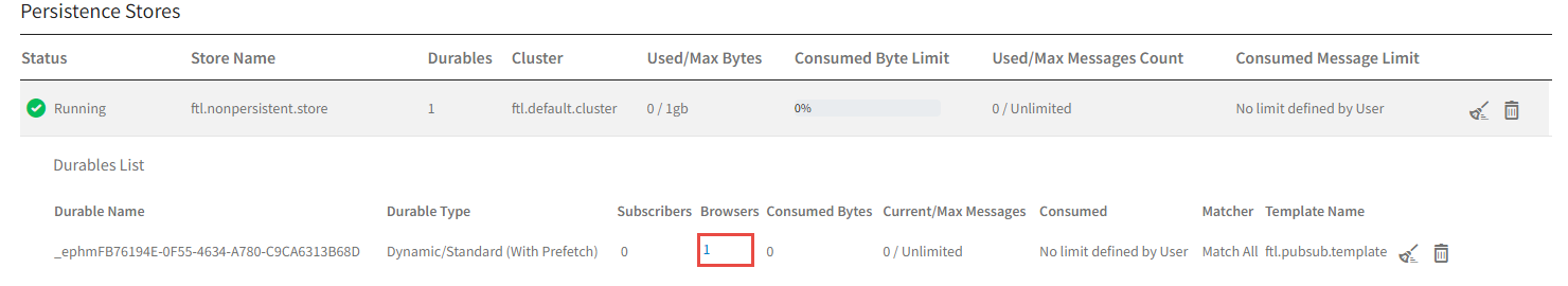 To see more details about the browsers in a persistence store, click the Browsers value in the Persistence Stores status table.