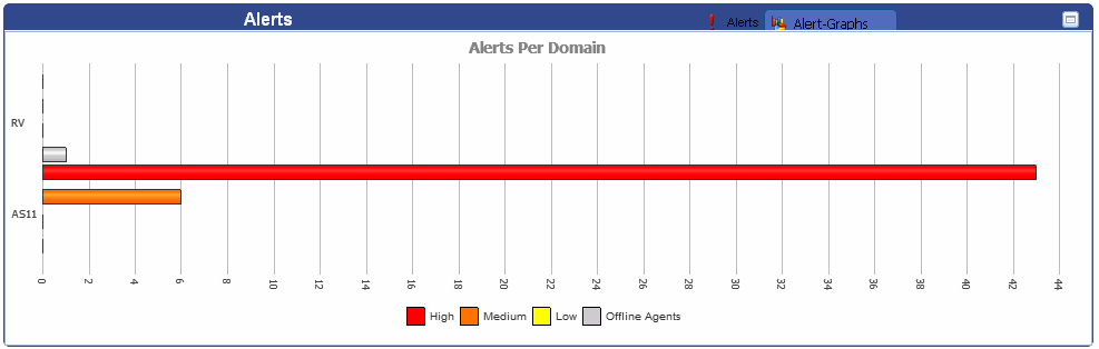 The Alerts portlet displays the alert list as well as bar chart representation of alerts. It displays all alerts across domains.For every agent, a separate bar chart graph is displayed. The graph is displayed with the category axis as "time" and value axis as “number of alerts”.