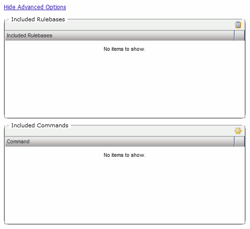 2. Clickicon available on the Included Rulebases section title bar. A new row is added to the Included Rulebases table.
