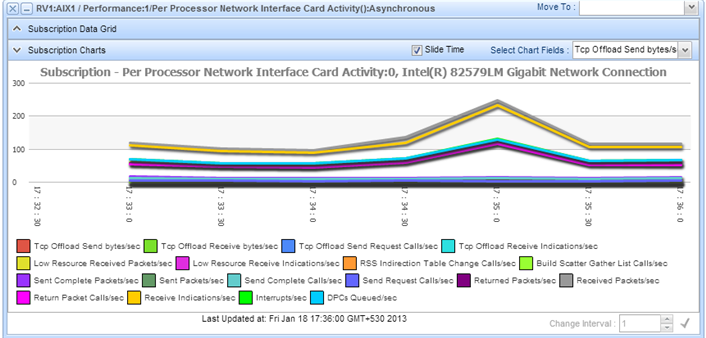 7. Select the Slide Time checkbox to see the graphs in a sliding window with the facet representing time sliding. If the Slide Time checkbox is cleared, you can see a consolidated average result over all time periods in the window.