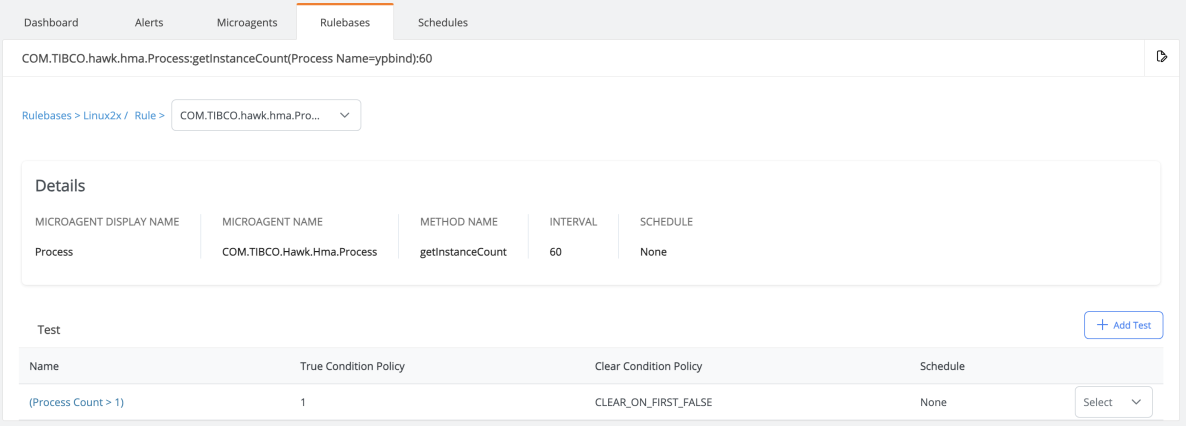 | • | Add an test condition - Click Add Test to add a new test condition to the rule. For details, see Creating a Test in the Rule. |