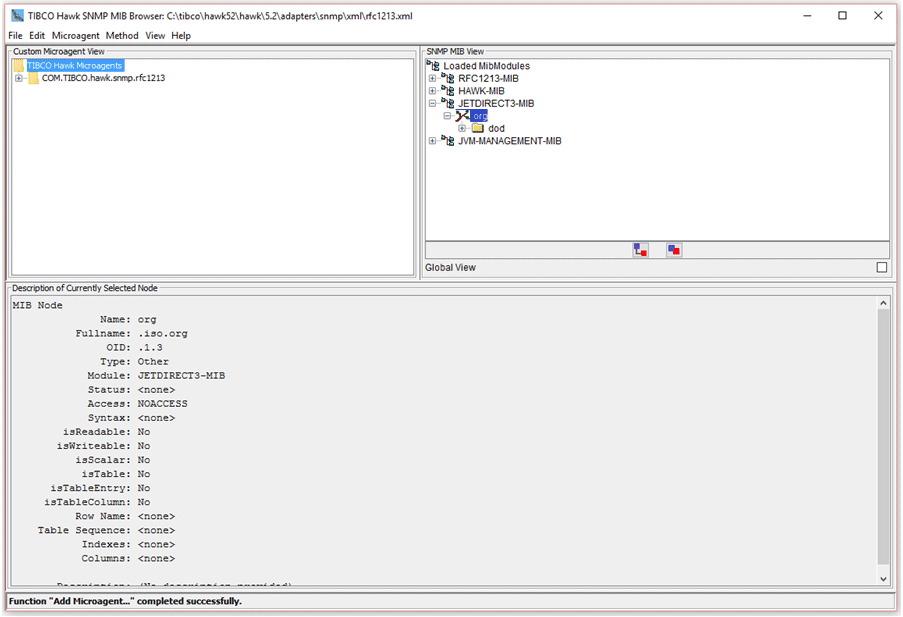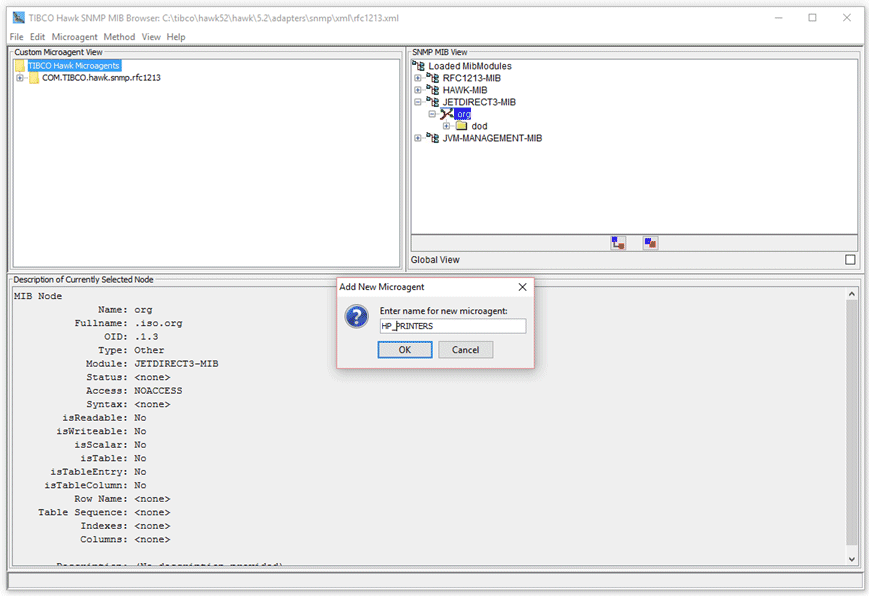 1. If the Hewlett Packard JetDirect3 MIB file has not been previously loaded, select the File->Load MIB options, navigate to the directory which contains the Hewlett Packard JetDirect3 MIB file.