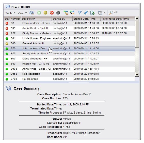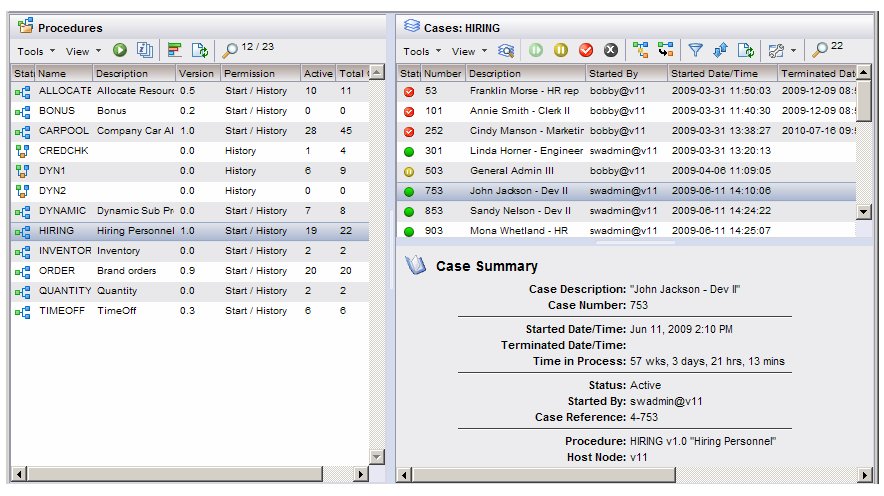 • ProcsCases - composite of the procedure list component (StartHistoryProcs) — see Procedures) and the case list component (see Cases)