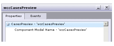 The Cases component is the only underlying component in CasesPreview. The case details that appear in the preview pane are not shown as a component in the Component Hierarchy. Therefore, you cannot separately configure access to the functions on the case details alone. When you configure access to functions using the properties on the Cases component under the CasesPreview component, you are configuring access to the functions on both the case list and the case details.For information about the events published by the components included with CasesPreview, see:Note that the Cases component events include the events published by case detail tabs displayed when a case is opened from the case list.The ProcsCases component is a composite of the following two components: