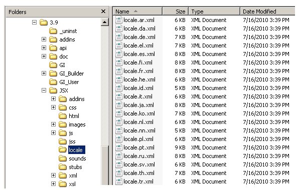 1. Create a new localized GI system language file using the same instructions as in Create a New Localized Language Resource File of this document, substituting ClientInstallDir\JSX\locale\ as the file path.