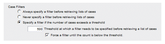 • Case Filters - Specifies whether or not to display the filter dialog before displaying the case list.