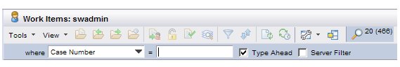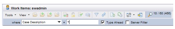 • Local Find - When using the find function in this mode, the system only searches through the pages of work items that have been downloaded from the server so far. Work items are downloaded from the server only when you view the page on which the work items are listed. For instance, if you’ve viewed two pages each containing 20 work items, only those 40 work items have been downloaded — the find function in local mode will only search through those 40 work items.To perform a local find, ensure that the Server Filter check box is not checked before entering your find criteria:Also note that the Type Ahead feature is available to use if you are performing a local find (it is not available when using the server find mode). For information about using the Type Ahead feature, see Finding Items in a List.