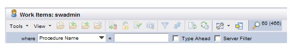 • ##(##) - This format (e.g., 60(466)) is displayed if you have clicked on the Find button, but you are not using the “server filter” feature with the find function. For more information about using the find function and the server filter feature, see Finding Work Items in the Work Item List.