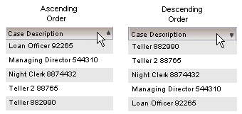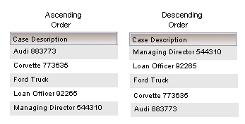 • By default, all work item lists are sorted by Procedure Name, followed by Case Number, then Step Name, all in ascending order. If you specify one or more sort fields using the sort dialog, the default sort fields are replaced by your specification. For example, if you specify to sort on case description only, that is the only field on which the list will be sorted.