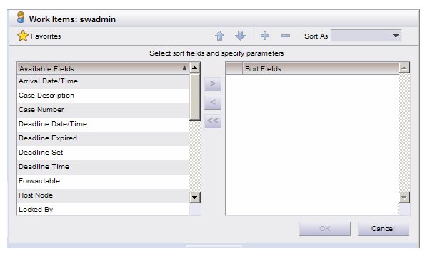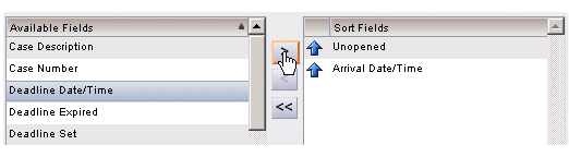 • System Fields - These fields contain information that is provided by the system, e.g., the date and time the work item arrived in the work queue, the case number the work item is associated with, etc.A comprehensive list of available system fields is provided in System Fields Used to Sort Work Items.