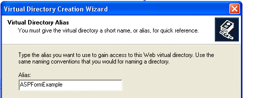 Create a virtual directory in IIS and give it an alias name. In this example, we will use the name of the example project.