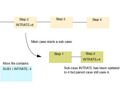 By default, if a new field value is supplied in an abox file, the new value is propagated through the parent case and down to any sub-cases via the appropriate field mappings defined by the step that initiated the sub-case. The