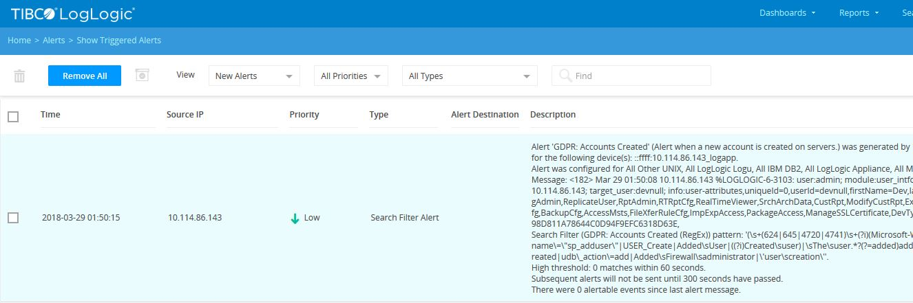 Note: Each alert was triggered based on your configured alert parameters, so you must be careful when acknowledging or removing the alert.