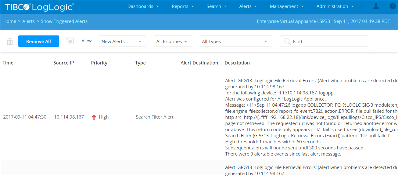 From Appliance drop-down menu, select the Appliance from which you want to view the alerts.