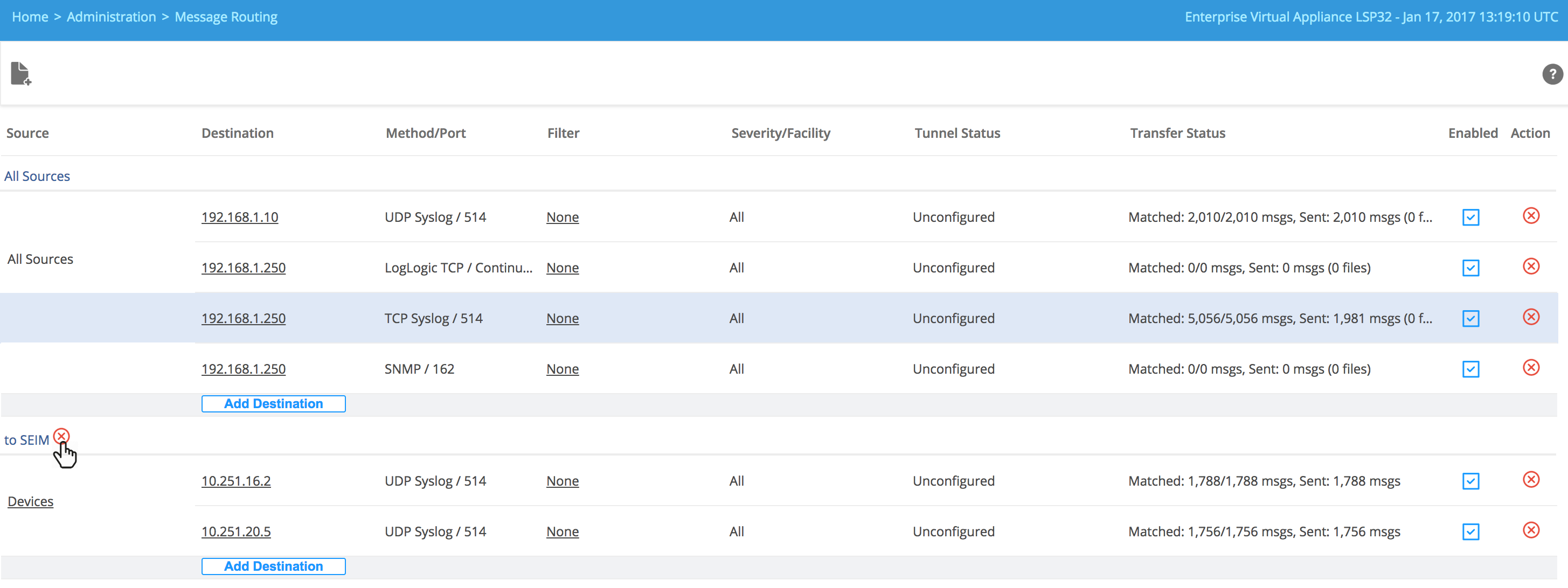 button next to the Rule to delete that rule and all of its destination as shown next.