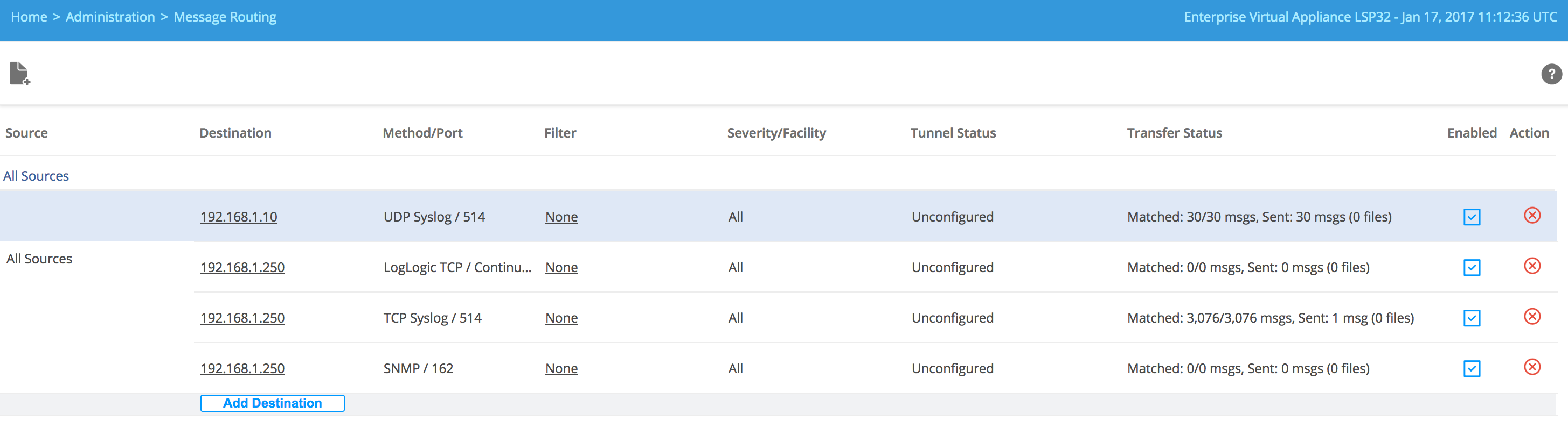 If you add a new log source, it is automatically added to this rule. You can add more destinations to the All Sources rule by using the Add Destination link. You can edit or remove the added destinations.