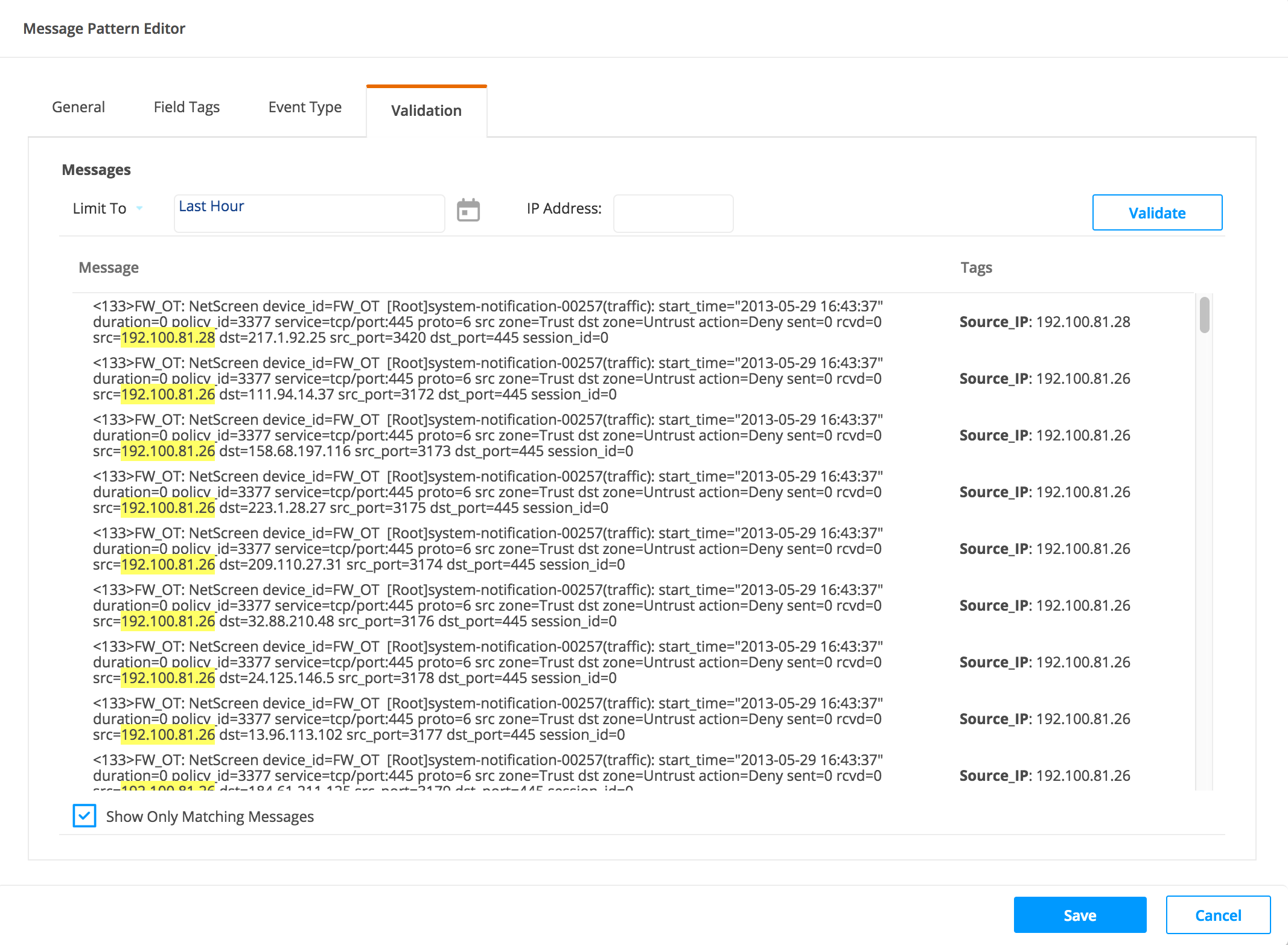 - To create additional tags from your selected message, highlight another portion and click Define Field again. Your second tag candidate appears grayed out. Again you can accept or edit the default Name, Description, and Type.