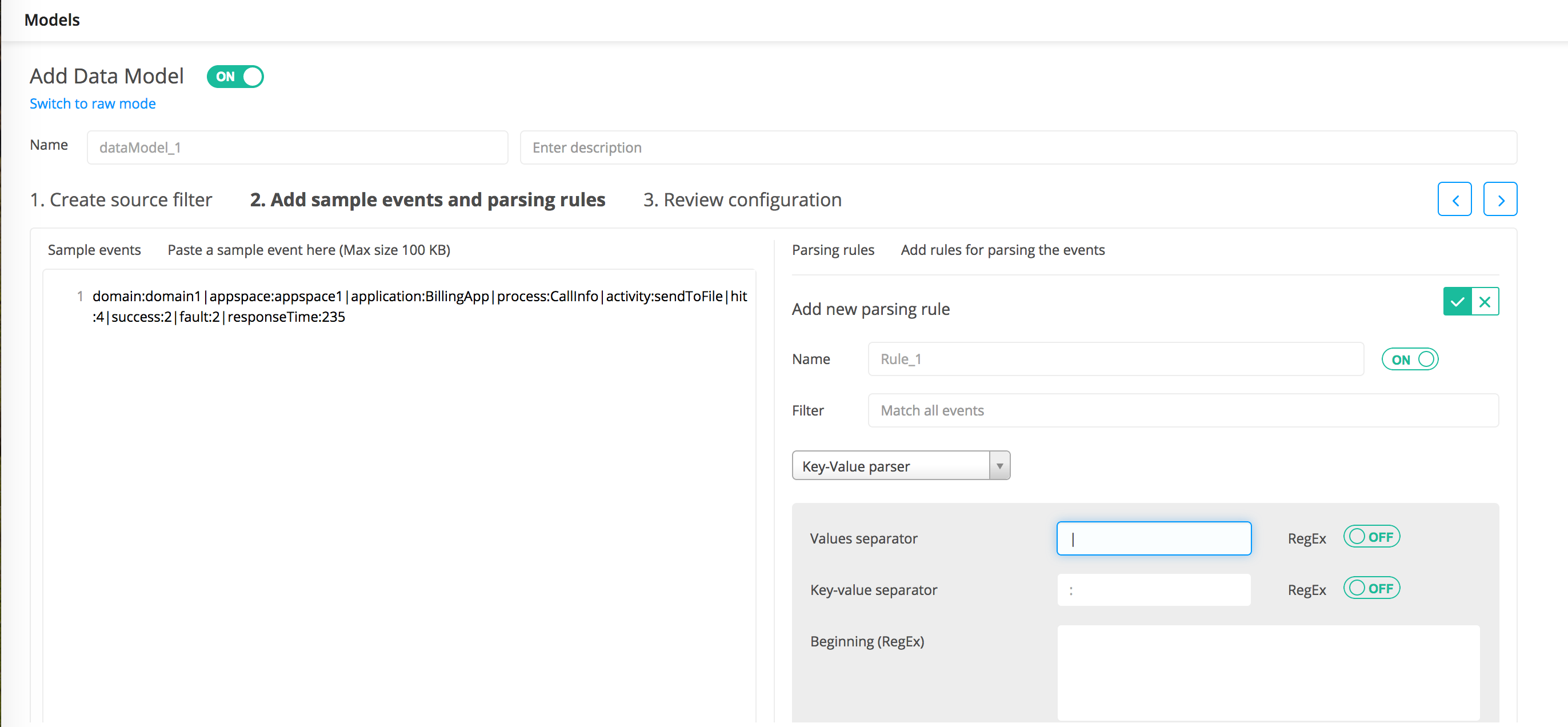 You can add one or more parsing rules that define how to parse log events.