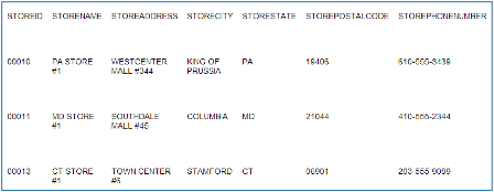 3 StoreAddress1 String Varies 234 Zirconia Mall