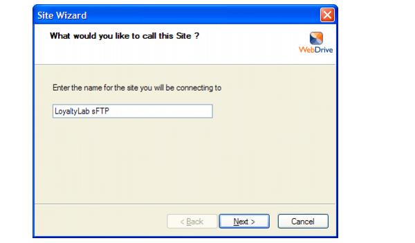 3. Enter this name for the Reward SFTP site: LoyaltyLab sFTP.