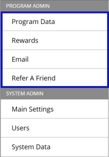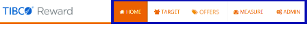 The TIBCO Reward user interface is divided into sections. Each section executes a certain set of tasks. The TIBCO Reward sections are as shown in the following screen shot: