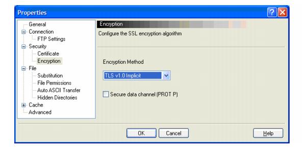 15. In the directory tree structure, click Security > Encryption, then choose TLS v1.0 Implicit from the drop-down menu.