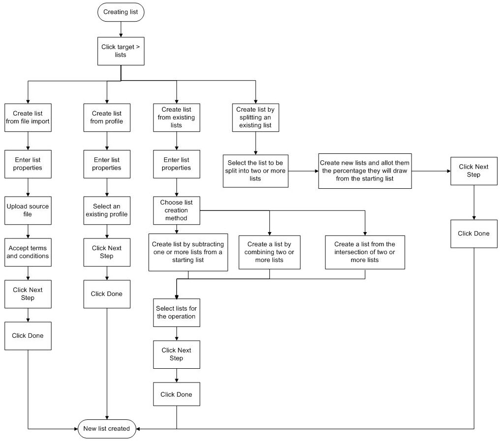 To help you create new lists based on the existing target lists, CRMS provides wizards to guide you through the steps of the list creation processes.