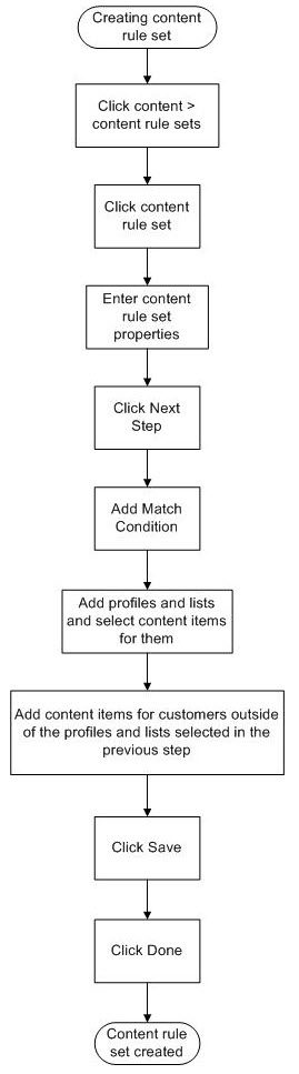 A content rule set establishes a set of matching rules using which you can add specific pieces of content to the individual emails in an email communication. The selection of content that is added to each individual email depends on whether that email's address matches a customer specified in one of the matching rules in the rule set.