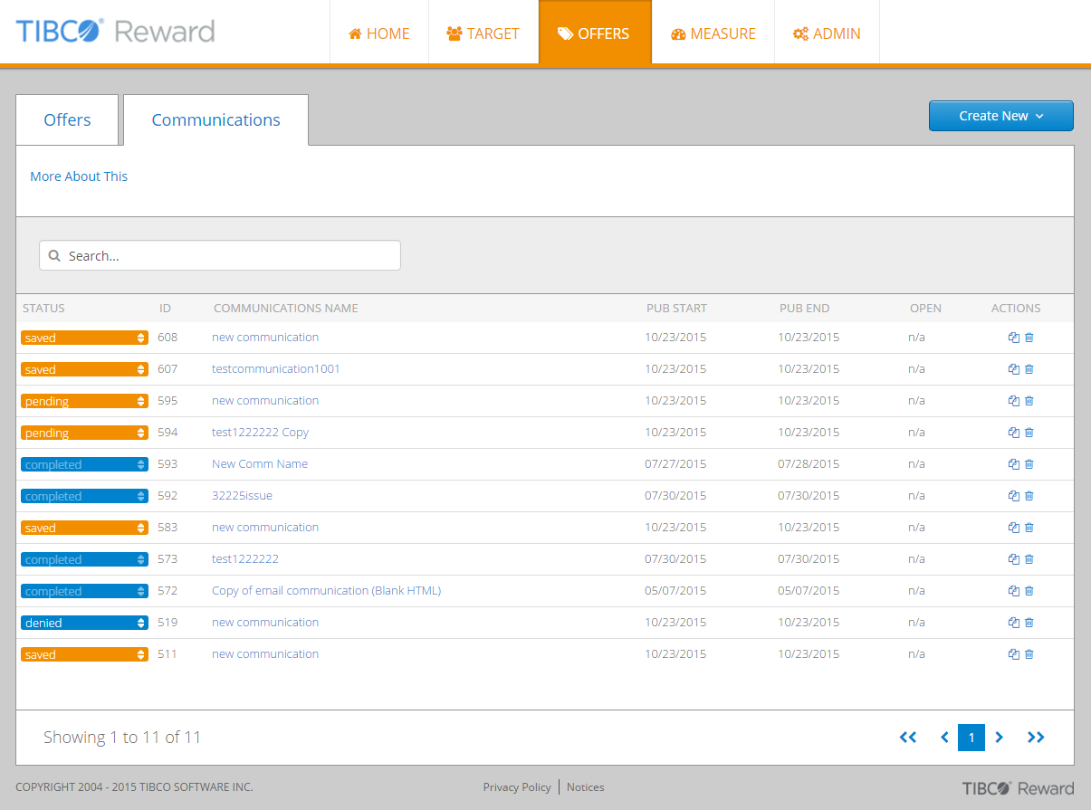 3. Enter the communication name in the search bar and press ENTER.