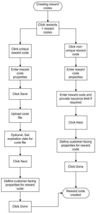 These examples demonstrate the difference between types of reward codes. You can create a non-unique reward code called “FreeShip,” which can be used by multiple customers when they earned free shipping versus using a unique code such as “123456,” which is issued only to a single customer.