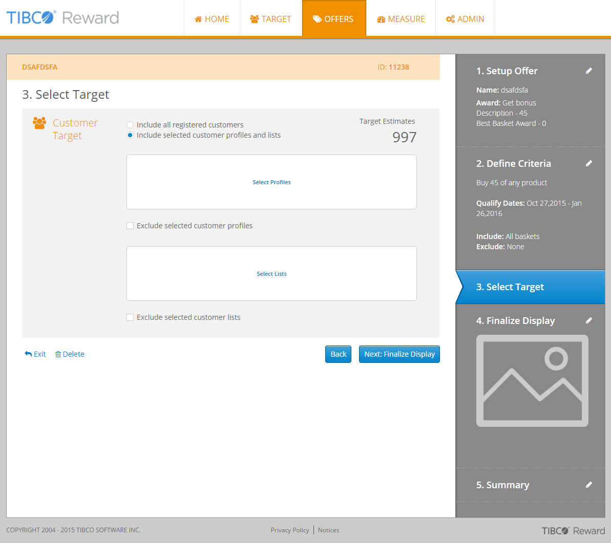 In this step, specify the customer segment, to which you target the offer. To select a target, perform the following steps: