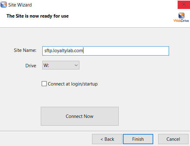 Select the drive name as W: (or any other name that does not conflict with an existing drive assignment letter). Uncheck