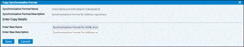 the Copy icon on the Synchronization Formats page to copy an existing synchronization format to create a new format.