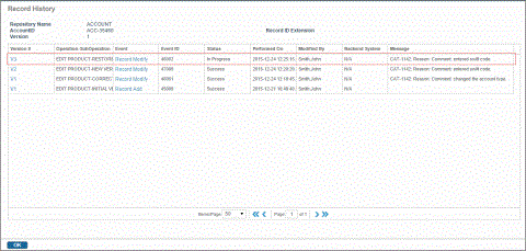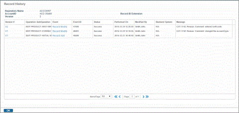 Save and Process. The updated Record History page is displayed with addition of a new version of a record.