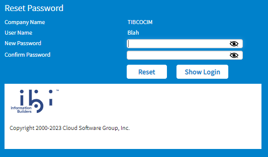 Depending on how a system administrator configured the system, you can reset the password. When you forget your password, you can reset it. Additionally, if you are logging in to ibi MDM for the first time, then after clicking Login, the Reset Password page is displayed. You must change the password provided by your administrator.